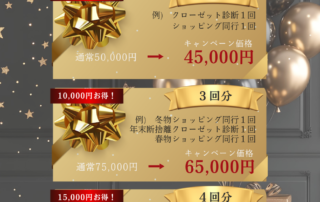【🖤BLACK FRIDAY】日頃のご愛顧に感謝を込めて。リピーター様限定!ショッピング同行&クローゼット診断チケットを最大¥15,000 OFF! 【🖤BLACK FRIDAY】日頃のご愛顧に感謝を込めて。 いつもご覧 [...] By 城之上 花櫻|2025-11-23T12:26:23+09:002025-11-22| 続きを読む
